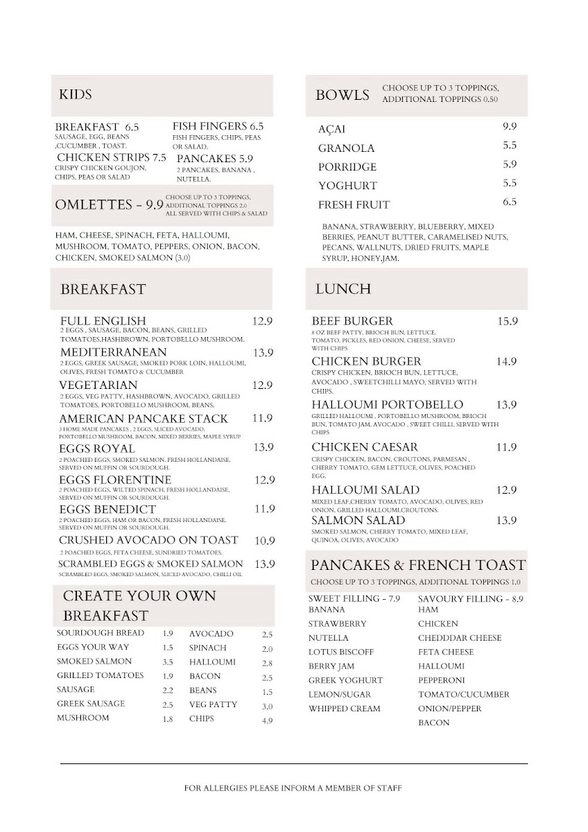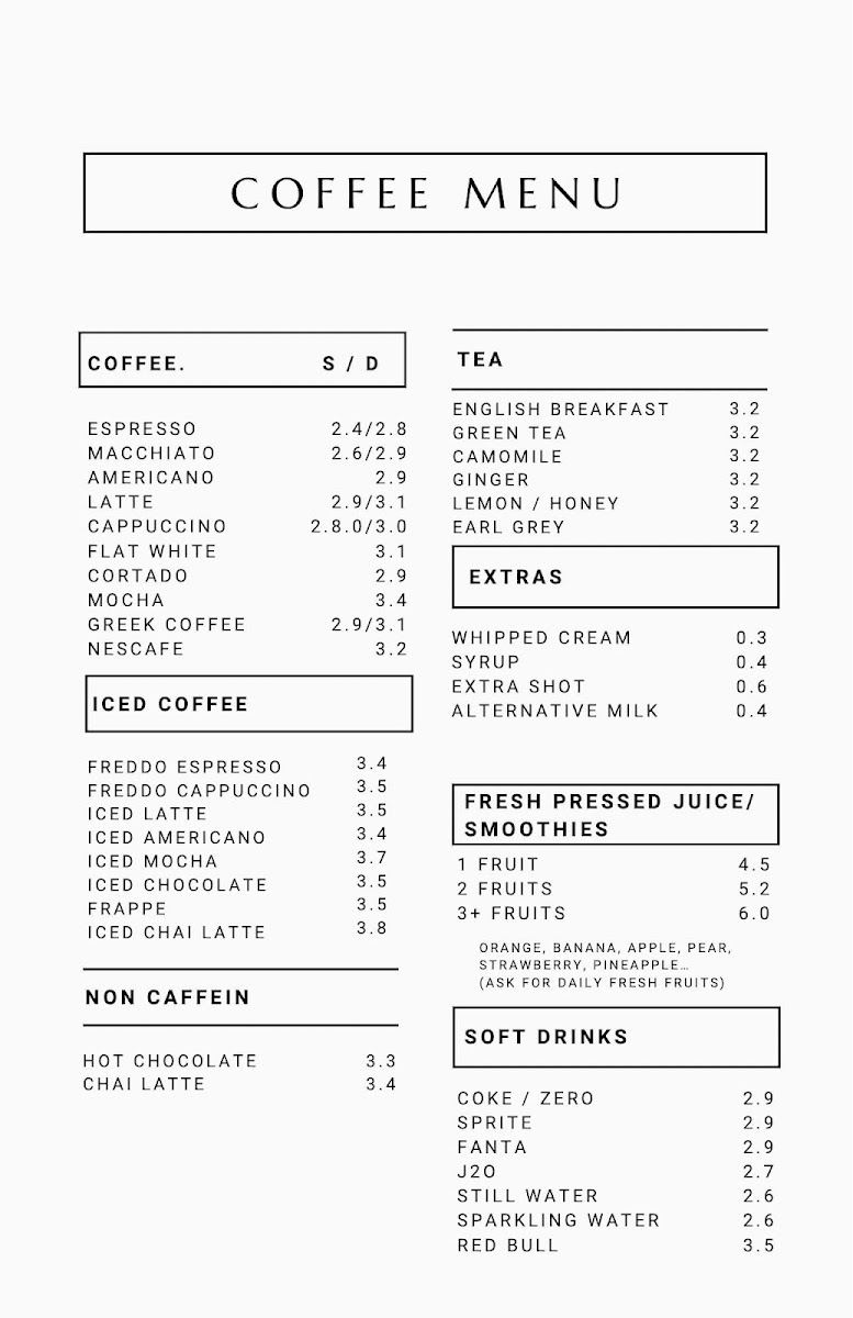 This menu is suitable for visitors seeking breakfast or brunch options, casual coffee breaks, or light meals throughout the day. The variety allows for both quick orders and more leisurely dining experiences.